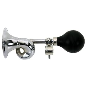 Product Description : Let them know youre coming with the Ventura Bugle Bike Air Horn. This bicycle horn is constructed of durable chrome plated steel and features a black rubber bulb. The Bugle Air Horn can produce up to 93.9 decibels of sound. The horn includes a 22mm clip for easy application.