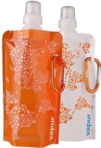 Product Description : Color: OrangeAmazon.comThe Vapur Fun Size Anti-Bottle is a foldable, reusable water bottle designed for convenient on-the-go use. Unlike traditional rigid bottles, Vapur Anti-Bottles are flexible. They stand upright when full and can be rolled, folded, or flattened when empty, easily fitting into pockets, purses, or packs. With a new reinforcing grommet and custom clip, this bottle is BPA-free and has an FDA-approved polyethylene liner that resists taste and stains. Dishwasher safe on the top rack, it's also made in the USA. Sold as a two-pack. WarrantyVapur products include a limited one-year manufacturer's warranty against defects in materials and workmanship. About VapurSince toting a bulky reusable water bottle can be a hassle (especially when empty) and disposable bottles are a waste, California-based Vapur Inc. set out to make water more sustainable and portable. Today, Vapur is one of the world's leading designers of flexible, reusable, hand-held hydration products, which the company calls "Anti-Bottles." Manufactured in the United States, Vapur Anti-Bottles are durable, freezable, dishwasher-safe, and BPA-free. The flexible, reusable AntiBottle also uses less energy to make and transport than traditional rigid bottles. In keeping with its commitment to the environment, Vapur contributes a portion of all Vapur sales to water-related and environmental causes. Product Description : The Vapur Anti-Bottle is a foldable, reusable water bottle designed for convenient on-the-go use. Unlike traditional rigid bottles, the Anti-Bottle is flexible. It stands upright when full and can be rolled, folded or flattened when empty easily fitting into pockets, purses or packs.