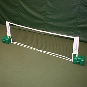 Product Description : The Vaught Sports 18-foot QuickStart Tennis Net is QuickStart & Tennis Play + Stay regulation length. It is infinitely expandable by adding additional poles, bases and nets. The net includes weighted bases to hold net in place even in windy conditons. Vaught Sports has a patented Bounce