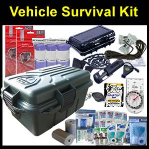 Product Description : The Vehicle Survival Kit is loaded with essential survival & medical tools and equipment, yet keeps a small profile so that it doesn't take up all the space in your automobile or truck. The equipment fits into a water and weather resistant hard shelled dry box that is lockable. The dry box is triple latched for security. The kit fully addresses the fundamentals of survival: shelter, water collection and purification, first aid and traumatic bleeding treatment, signaling, and fire starting. So, if you're traveling in remote areas in your car, truck, or RV and want to be prepared for just about anything, this is your kit. CONTENTS: Deluxe Survival Kit by UST: BlastMatch Fire Starter WetFire Tinder StarFlash Signal Mirror JetScream Whistle SaberCut Saw HardCache CaseAlso:(QTY 2) HeatSheet 2 Person Survival Blankets (QTY 2 Sachets) Wind/Waterproof NATO Survival Matches Vacuum Pk of 10 (QTY 4) WetFire Tinder Cubes (QTY 2 Pack) Aquamira Water Purification Tablets Military 10 Pk (QTY 3) WhirlPak 1 L. Stand Up Bags (QTY 2 Rolls) Duct Tape: 2 in. x 50 in. each roll (QTY 1 Roll) Silicone Self-Fusing Tape, 1 in. x 5 ft roll (QTY 1 Pack) Light and Fast Bandages. Everything you need to dress and bandage wounds: 2 Dressing, Sterile, 3" x 4" 3 Dressing, Gauze, Sterile, 2" x 2", Pkg./2 3 Dressing, Gauze, Sterile, 4" x 4", Pkg./2 1 Tape, 1/2" x 10 Yards (QTY 1 Pack) Topical Antiseptics and Ointments: 6 Triple Antibiotic Ointment, Single Use 12 After Cuts & Scrapes Antiseptic Wipe 6 After Bite Wipe (QTY 1) QuikClot 25g Pack (QTY 1) Photon Freedom Microlight LED White (QTY 2) Military Can Opener, P-51 Model (QTY 10 Feet) 550 pound test parachute cord, 7 strand QTY 1) Silva Polaris Baseplate Compass Survivor Dry Box Case: Triple latched. 9.8 in. x 6.8 in. x 4.8 in (OD) 8.2 in. x 5.0 in. x 4.4 in.(ID.)
